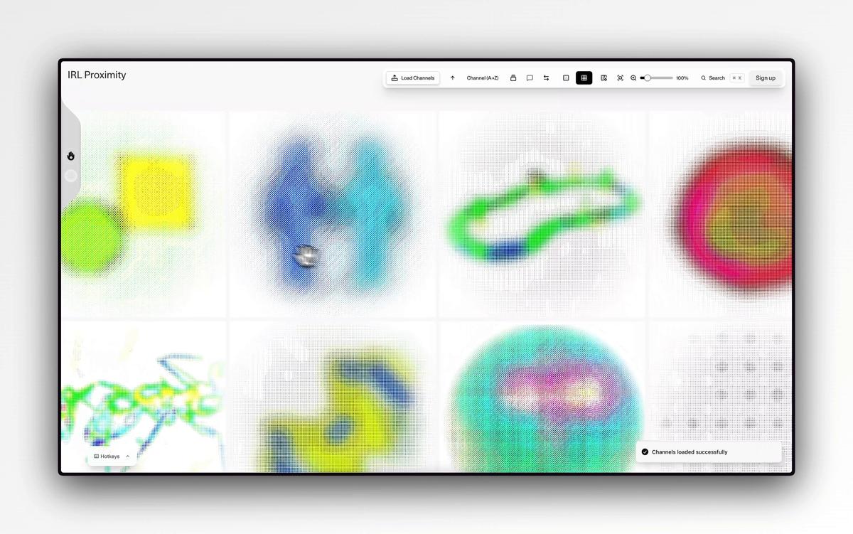 It is not a productivity tool and not a second brain. It is a living interface for finding closeness with ideas past and present — by locating them spatially and working with them in real time. Proximity integrates directly with Are.na: you can pull channels in and push grids back with full source fidelity. AI remains ambient and optional, surfacing links and references without taking over the work.