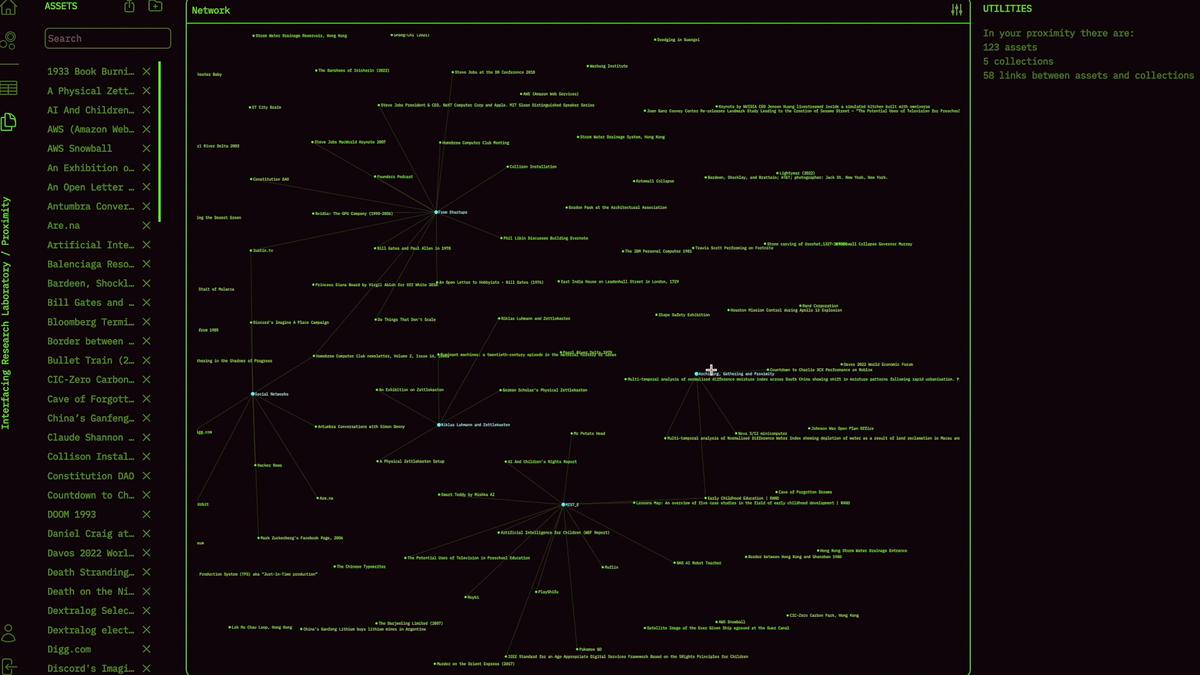 Proximity proposes a thinking engine that transforms solitary collecting into shared spatial memory. It is just as valuable for private reflection as it is for collective intelligence, treating grids as portals that connect individuals, institutions, and communities through ideas held in place. The aim is a quiet, multiplayer, AI-assisted ecology where knowledge becomes close again — gathered, grown, and circulated with care across time and space.